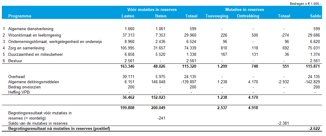 Wij bieden u nu een begroting aan met een verwacht begrotingsresultaat 2026 van € 2.622,172,- positief. In dit begrotingssaldo zijn bovenstaande ontwikkelingen verwerkt.