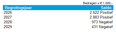 Voor de jaren ná 2026 verwachten we de volgende begrotingsresultaten: