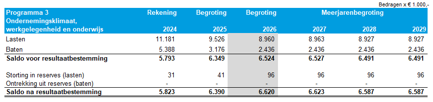 Terug naar navigatie - 2.3 Programma 3 Ondernemingsklimaat, werkgelegenheid en onderwijs - Begrotingstotalen van programma 3 Ondernemingsklimaat, werkgelegenheid en onderwijs2.4 Programma 4 Zorg en samenleving