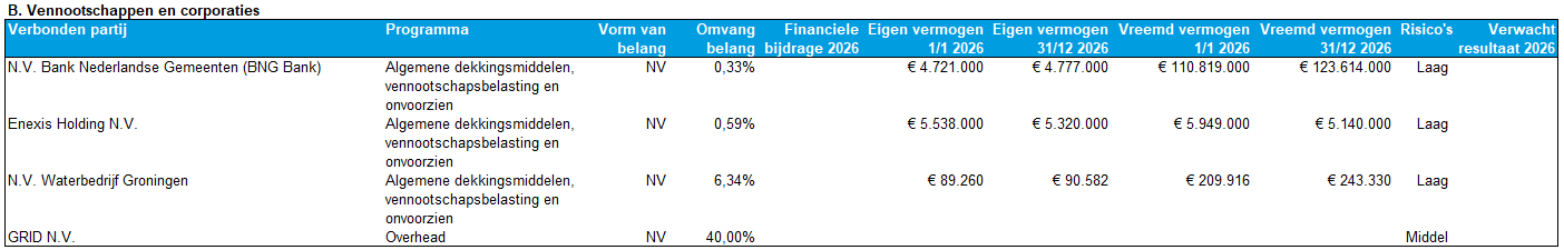 Terug naar navigatie - B3. N.V. Waterbedrijf Groningen - BetrokkenenAlle gemeenten in Groningen en de provincie Groningen.