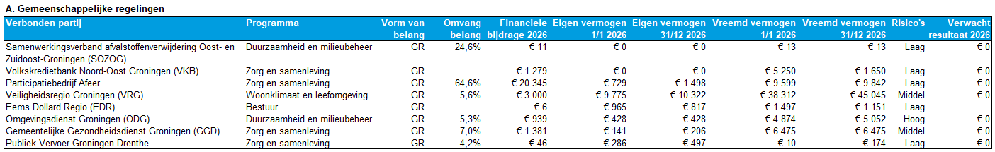 Voor de gemeente Oldambt geldt dat er alleen sprake van Verbonden partijen is onder punt A en B.