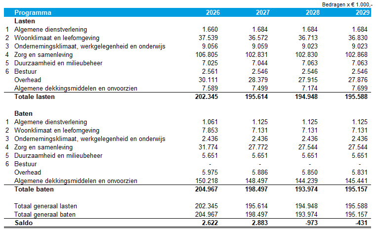 Terug naar navigatie - 6.1 Meerjarenbegroting - Recapitulatie meerjarenbegroting per programma