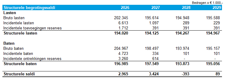 Bijlage 5: Overzicht incidentele en structurele baten en lasten